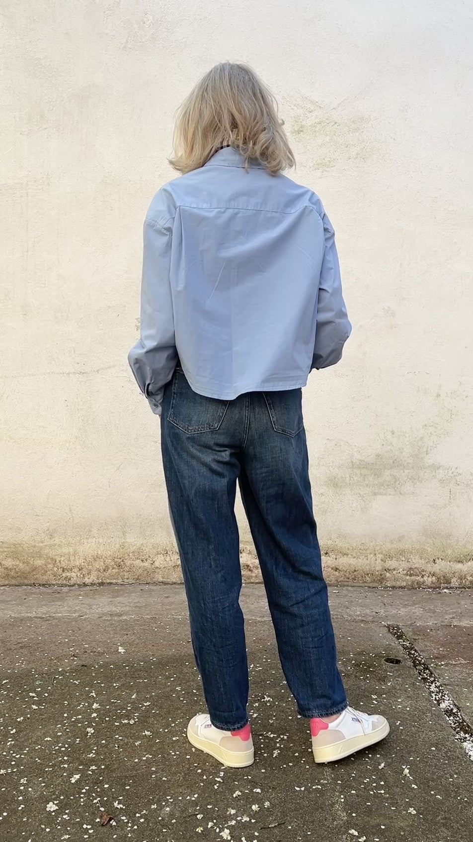 En tidløs, sommerlig og let bomuldspoplinsskjorte fra Aspesi i en smuk lyseblå farve. Skjorten har en løs, let cropped pasform og er gennemknappet. Den har en klassisk krave, lange ærmer med enkelknappede manchetter og en afrundet kant, der tilfører et feminint touch.
